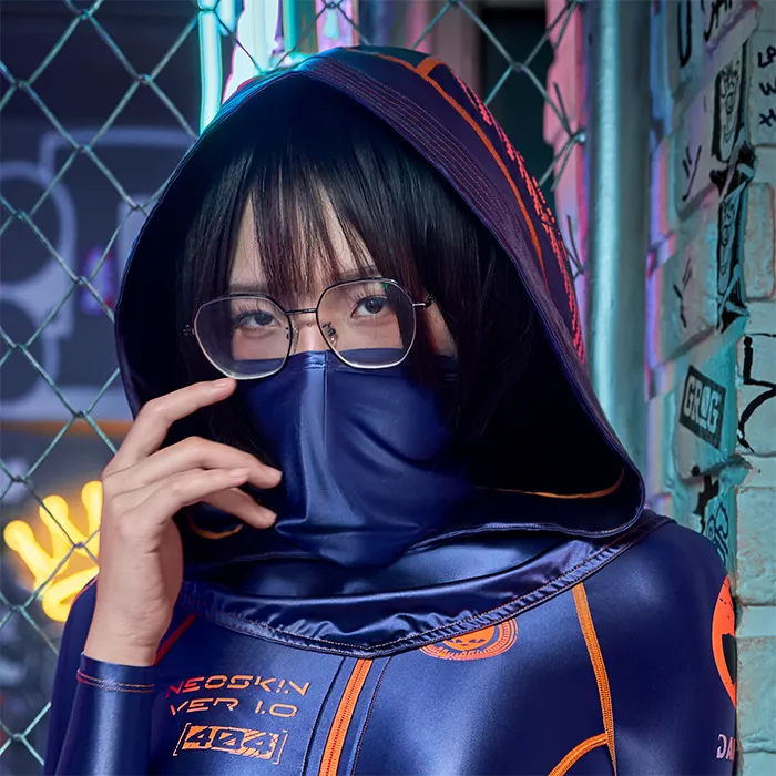 The Neoskin Ver. 1.0 “Wanderer in Space” Catsuit is crafted from smooth satin spandex that’s skin-tight, stretchy, and designed to move with your body. Its sleek finish gives it a second-skin feel, while the front zipper adds both practicality and style. Each suit can be ordered with a removable assassin-hood, giving you flexibility in how you want to wear it.