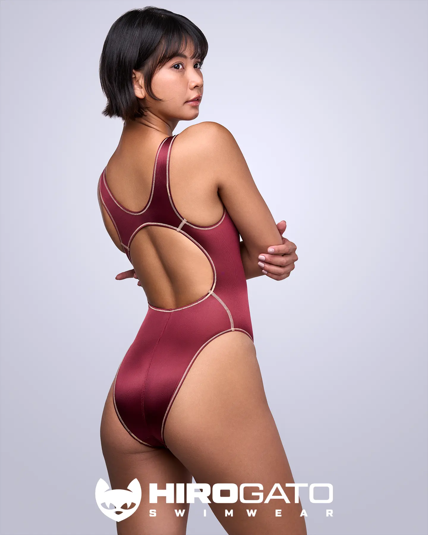 Sheer Nylon ‘Sirius A’ Racing Swimsuit Dark Maroon